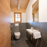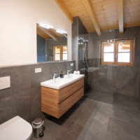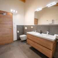 Das Badezimmer verfügt über ein Doppelwaschbecken, Dusche und WC. Auch ein separates Gäste-WC ist vorhanden.